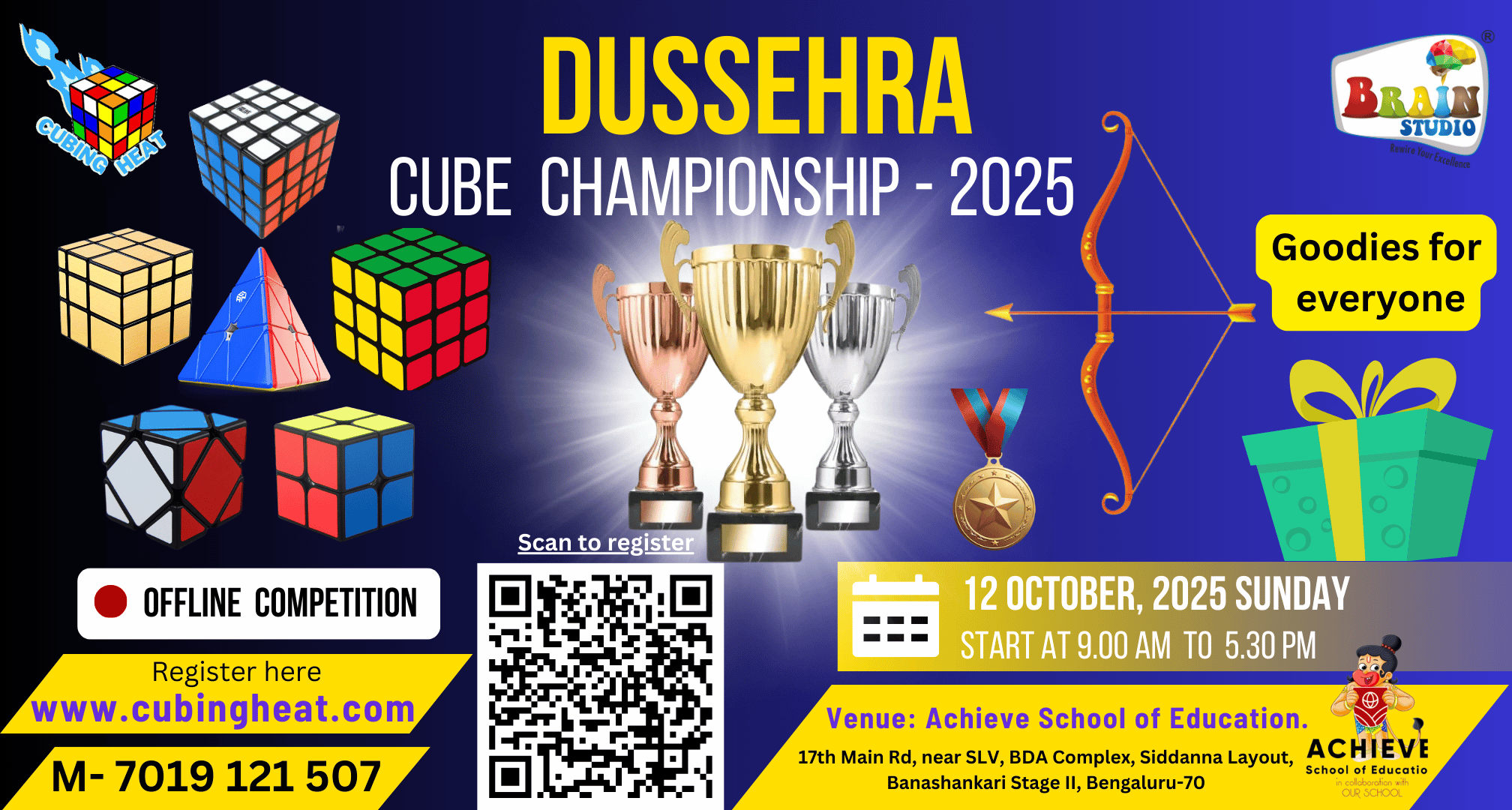 Register now to claim your place in Bengaluru’s premier cube competition of 2025. Bring your cubes, focus, and enthusiasm to be part of this unique Dussehra celebration!